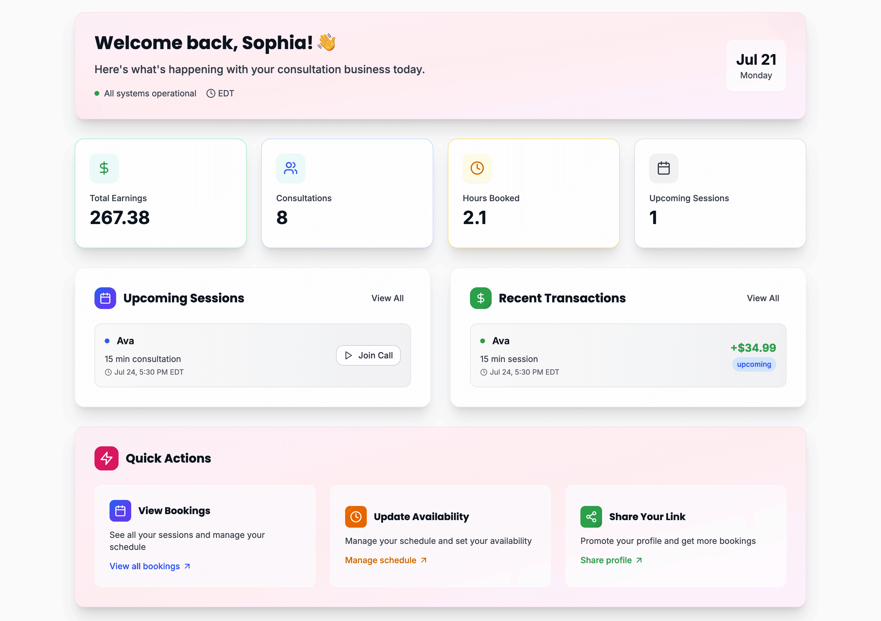 Monetize your audience with paid 1:1 calls. Set your price, share your link, get paid to talk.